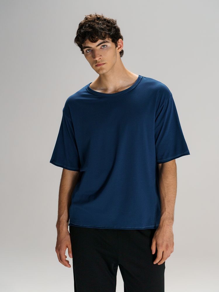 Футболка оверсайз унисекс Vozduh, темно-синяя, размер XS/S