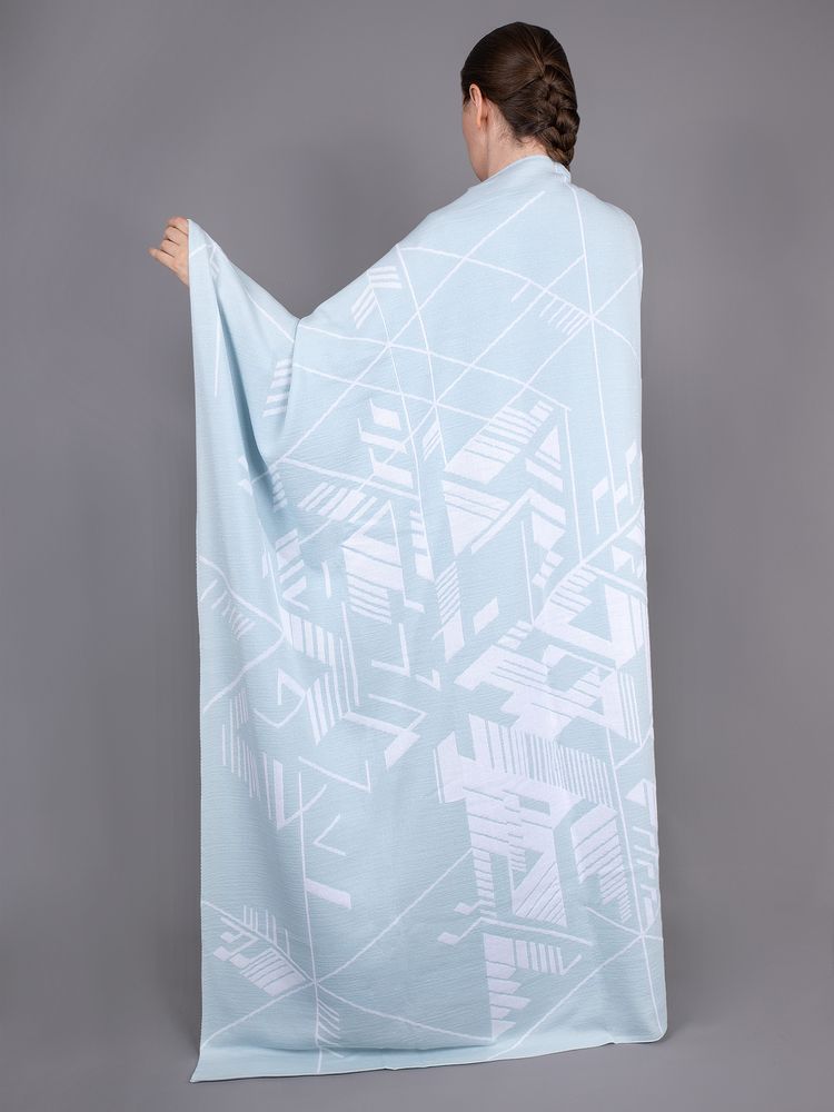 Плед Winterflake, бело-голубой с люрексом