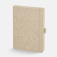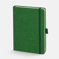 Блокнот с твердой обложкой из натуральной окрашенной пробки, дополнен петлей-резинкой для ручки, ляссе и резинкой в цвет обложки.